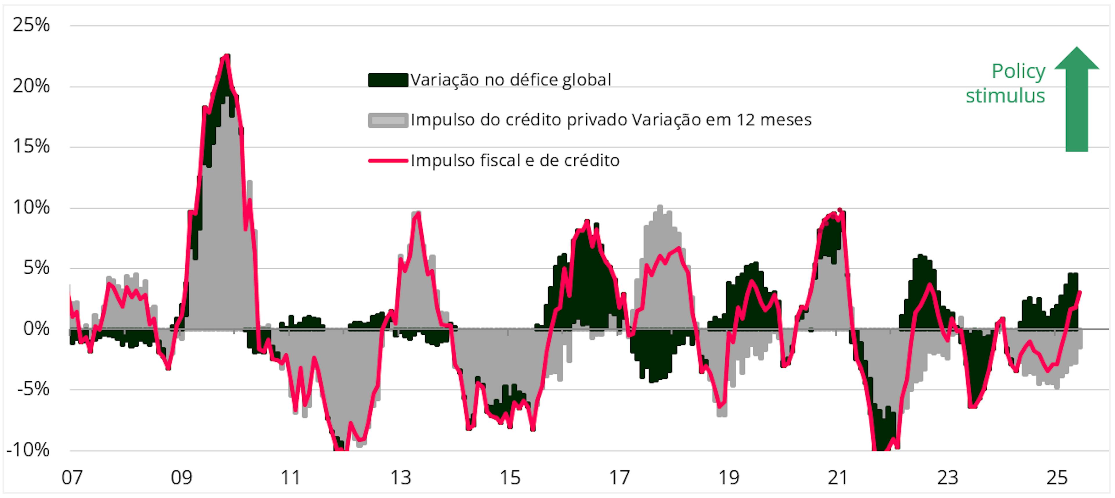 Além disso, estamos agora a assistir a uma recuperação marginal do impulso do crédito chinês e a um aumento do défice para 15% do PIB. Estes efeitos estimulantes – ainda não amplamente reconhecidos – representam cerca de 4% do PIB.
