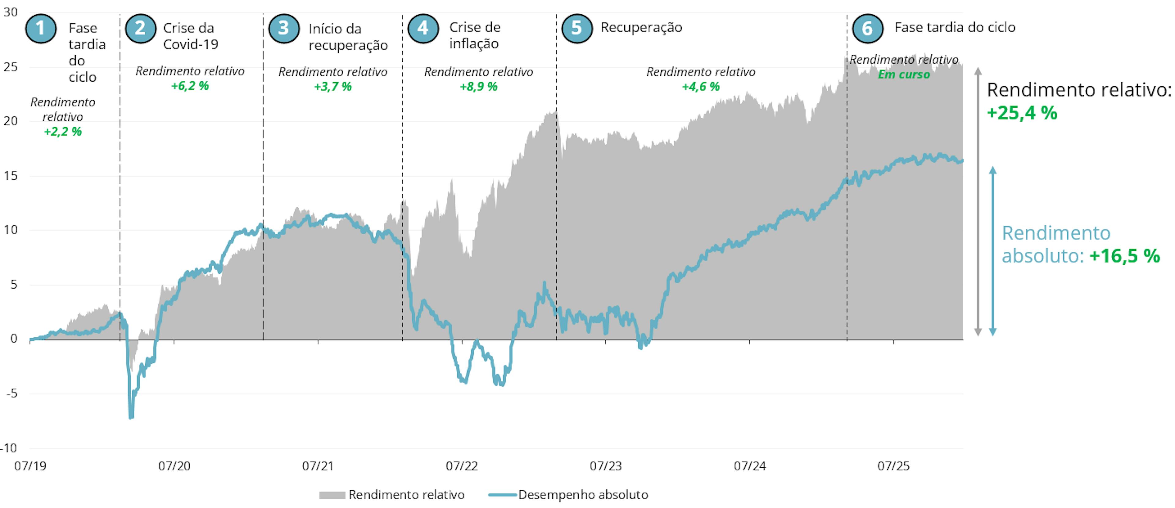 O desempenho passado não é necessariamente um indicador do desempenho futuro. Os desempenhos são líquidos de comissões (excluindo eventuais comissões de subscrição cobradas pelo distribuidor).