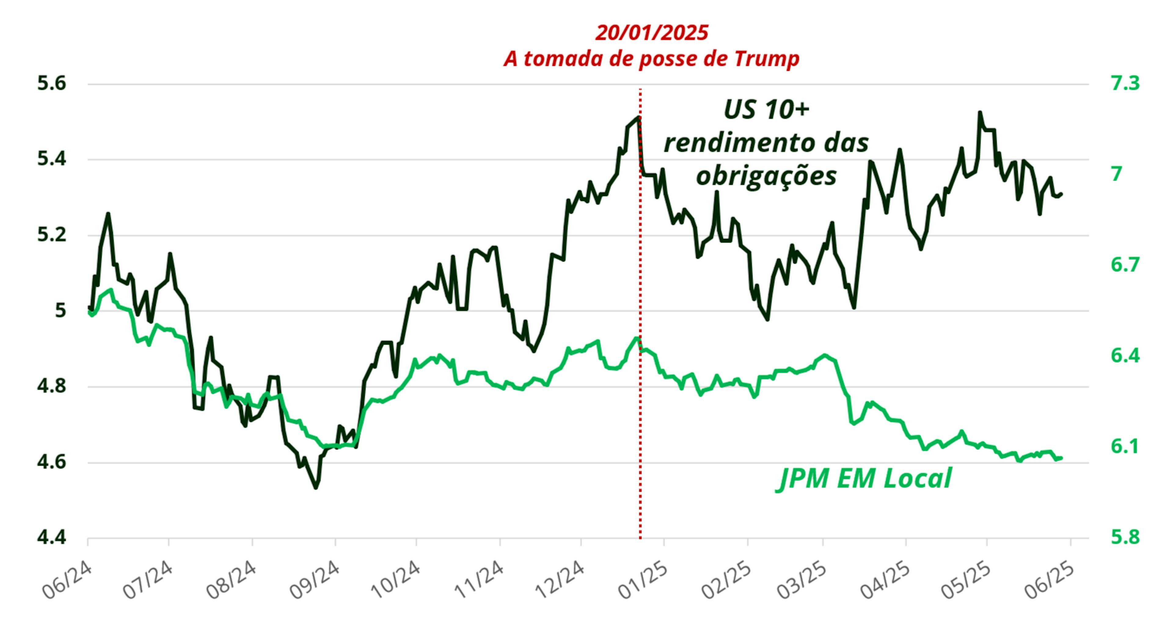 Yields das obrigações locais dos EUA vs. Yields dos mercados emergentes